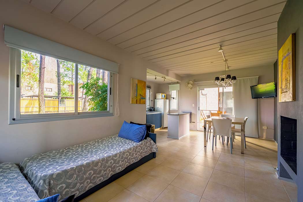– Living comedor con hogar y diván, TV y DVD.